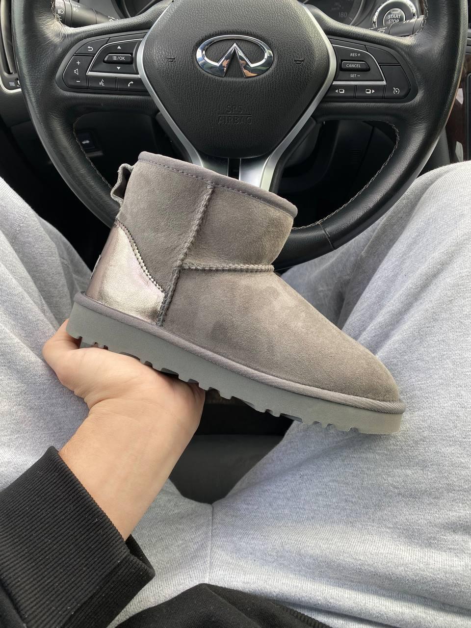 UGG mini Grey жіночі уггі на зиму. Уггі з хутром жіночі. Класні жіночі уггі.